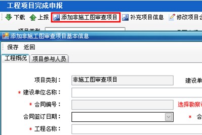 2、點擊“添加非施工圖審查項目”按鈕,彈出項目填寫界面(如下圖21-4-4):