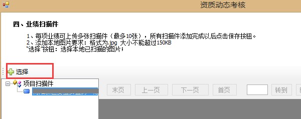 生成動態(tài)考核表時,到業(yè)績掃描件步驟時,界面中顯示出上一步已選擇的業(yè)績,選擇需要上傳掃描件的業(yè)績,點(diǎn)擊