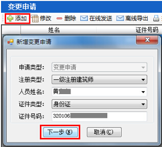 第四步:點(diǎn)擊“添加”,彈出選擇人員界面,將選擇欄內(nèi)容完善后點(diǎn)擊“下一步”(如圖12-11-2):