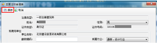 第五步:彈出變更注冊(cè)申請(qǐng)表界面,完善需填寫的內(nèi)容,然后點(diǎn)擊“保存”按鈕(如圖12-11-3):