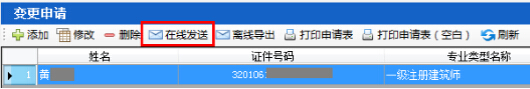 第六步:返回變更申請(qǐng)界面,選擇已生成的變更注冊(cè)申請(qǐng),點(diǎn)擊“在線發(fā)送”按鈕,完成變更注冊(cè)申報(bào)。