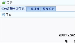 1、點擊“注冊申報管理—初始注冊申請”,新增選擇人員,填寫初始注冊信息,點擊保存,回到初始注冊申請界面,雙擊剛才生成的初始注冊申請記錄,彈出此人員的初始申請信息、工作業(yè)績、照片簽名,完善所有信息后,點擊保存,如圖10-6-1:
