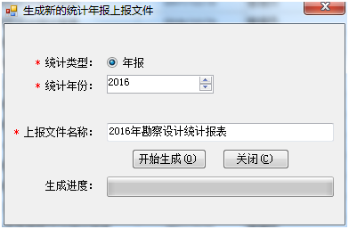2、點擊圖20-14中的“添加統(tǒng)計報表”按鈕,彈出生成統(tǒng)計年報表對話框,選擇相應(yīng)的統(tǒng)計年份,點擊“開始生成”按鈕(如圖20-15):