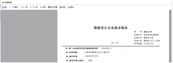 4、發(fā)送后點擊“修改”按鈕,在左上角有一個“打印”按鈕,點擊“打印”按鈕,顯示報表打印預(yù)覽,進行統(tǒng)計年報表文件打?。ㄈ鐖D20-20):