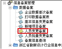 第一步:點(diǎn)擊“信息備案管理-數(shù)據(jù)備案-人員變更備案”模塊(如圖11-7),則會彈出人員變更備案界面(如圖11-8):