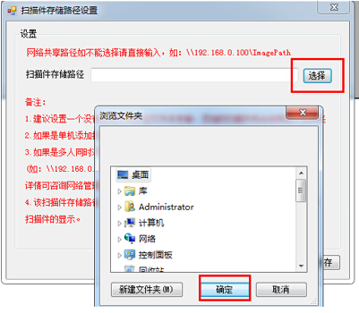 第三步:彈出掃描件路徑設(shè)置對(duì)話框,點(diǎn)擊“選擇”按鈕,彈出路徑設(shè)置界面,選擇好后點(diǎn)擊“確定”,如圖27-1-3: