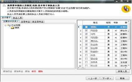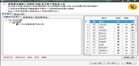 6、技術(shù)骨干頁面人員列表中采取鼠標(biāo)左鍵拖拽方式,拖動到左邊相應(yīng)的專業(yè)上面(如圖20-26),執(zhí)業(yè)人員則進(jìn)行勾選方式選擇(如圖20-27):