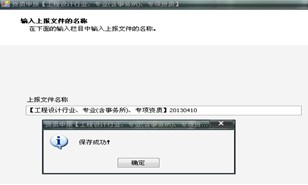 9、點(diǎn)擊下一步,彈出“資質(zhì)證書采集表”窗口,填寫《建設(shè)部受理辦資質(zhì)申請、變更受理信息采集表》有關(guān)信息,填寫后點(diǎn)擊下一步,填寫上報文件名稱,點(diǎn)擊完成,系統(tǒng)提示“保存成功”(如圖20-30):