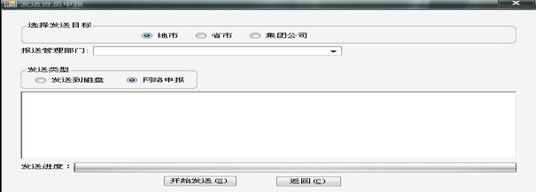 4、點(diǎn)擊“確定”,系統(tǒng)彈出發(fā)送資質(zhì)申報表窗口,選擇發(fā)送目標(biāo)、發(fā)送類型,點(diǎn)擊“開始發(fā)送”(如圖20-33):