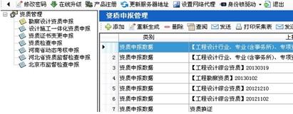 1、點(diǎn)擊“資質(zhì)管理”模塊下的“勘察設(shè)計資質(zhì)申報”子模塊,則彈出資質(zhì)申報管理界面(如圖20-21):