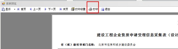 6、點(diǎn)擊“打印資質(zhì)申報”按鈕,彈出打印資質(zhì)申請表預(yù)覽窗口,點(diǎn)擊打印即可(如圖20-35):