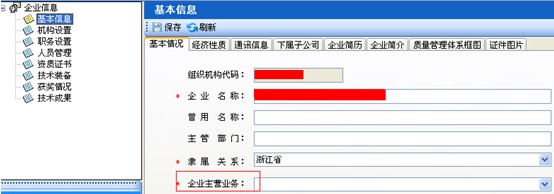 第一步:點擊“企業(yè)信息-基本信息”模塊,在基本信息頁面中填寫“企業(yè)主營業(yè)務”(如圖6-12):