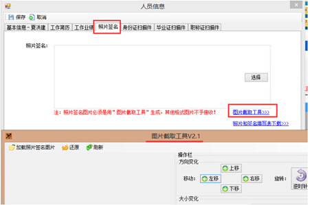 第六步:點(diǎn)擊“加載照片簽名圖片”按鈕,查找和選擇“照片和簽名填寫表”電子掃描的圖片,然后打開,再將簽名調(diào)整、對(duì)齊在框內(nèi),點(diǎn)擊“截取圖片”按鈕,保存成jpg格式的圖片。
