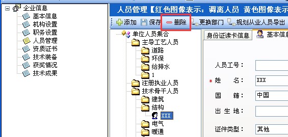 :在人員管理模塊,單位人員集合下,選中要刪除的機構(gòu)設(shè)置下的人員。如圖