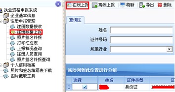 2、點(diǎn)擊“注冊(cè)申報(bào)管理—注冊(cè)數(shù)據(jù)上報(bào)”,在人員列表中選擇導(dǎo)入的數(shù)據(jù),點(diǎn)擊菜單欄“在線上報(bào)”,系統(tǒng)提示上報(bào)成功,即變更注冊(cè)上報(bào)成功,如圖10-4-2: