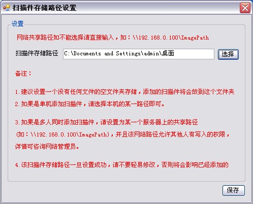 第二步:插上二代身份證閱讀儀,然后點擊掃描件存儲路徑設置(如圖1-2),第一次點擊選擇一個存儲路徑之后建議不要修改,確定一個存儲路徑之后點擊保存。