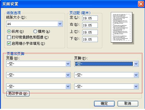 第二步:在彈出的頁(yè)面設(shè)置對(duì)話框,將“頁(yè)眉和頁(yè)腳”的內(nèi)容都設(shè)置為空,如圖4-2-2: