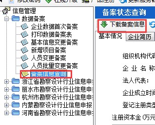 解決方法:此功能用來查詢企業(yè)已上報的數(shù)據(jù)備案信息內(nèi)容。企業(yè)數(shù)據(jù)備案成功后第二天,點擊“信息備案管理-數(shù)據(jù)備案-備案信息查詢”模塊,點擊“下載備案信息”,可以下載查看企業(yè)備案的企業(yè)、人員、證書信息等內(nèi)容。如圖11-10-1: