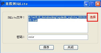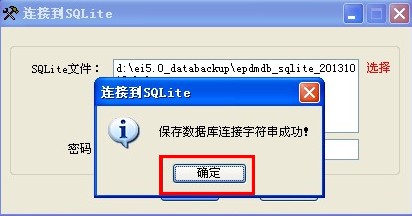 第四步:選擇好了數(shù)據(jù)庫(kù)之后,點(diǎn)擊“打開”,然后在彈出的連接到SQlite界面點(diǎn)擊“保存”按鈕(如圖1-2-4),則會(huì)彈出保存字符串成功的提示(如圖1-2-5):