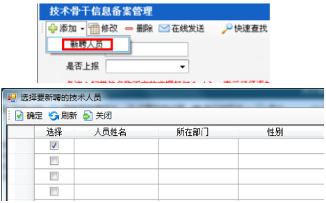 第二步:點擊添加—新聘人員,彈出人員選擇對話框,選擇人員,點擊確定,如下圖24-7-2: