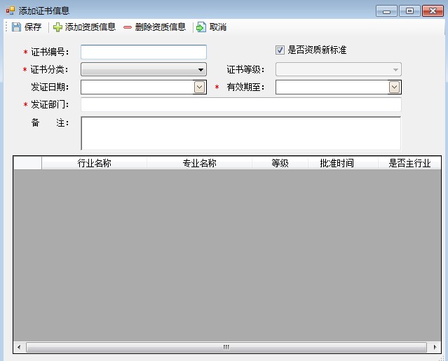 :添加證書編號等信息后,點擊添加資質信息,選擇相應的行業(yè)名稱、專業(yè)名稱等級、批準時間、是否主行業(yè) ,根據(jù)自己企業(yè)所擁有的資質實際情況填寫保存即可。