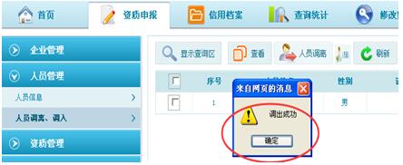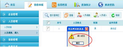 第三步:點(diǎn)擊“確定”后,系統(tǒng)彈出提示“調(diào)入成功”即為成功調(diào)入該人員。如圖3-2-6