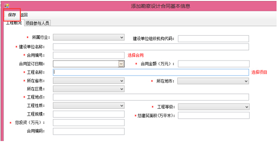 第二步:點(diǎn)擊“添加”按鈕,彈出合同信息填寫(xiě)對(duì)話(huà)框,填寫(xiě)完整后,點(diǎn)擊“保存”按鈕,如圖28-4-2: