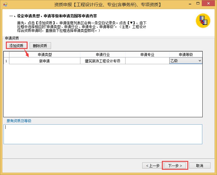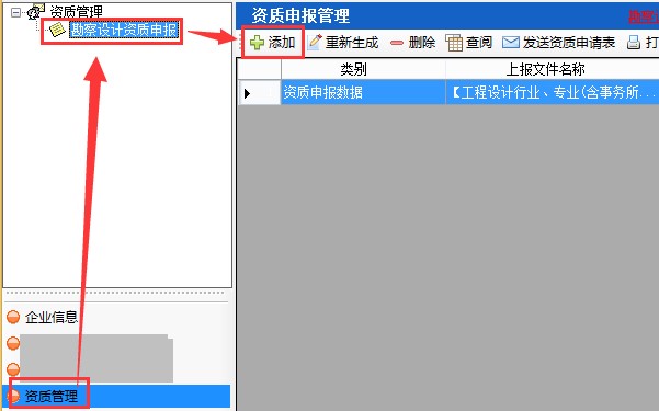 1、資質管理——勘察設計資質申報——添加