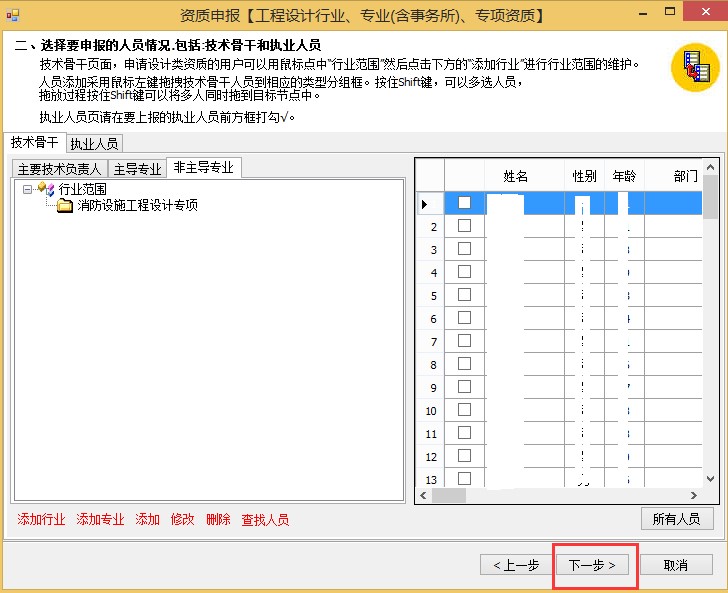 5、選擇要申報的人員界面,此次為簡單換證無需選擇人員,直接點擊下一步跳過此步驟