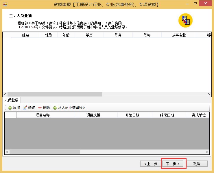 6、人員業(yè)績界面,此次為簡單換證無需選擇人員業(yè)績,直接點擊下一步跳過此步驟