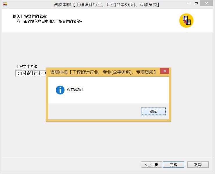 9、上報文件名稱,直接用默認生成的即可,直接點擊“完成”,彈出保存成功字段。