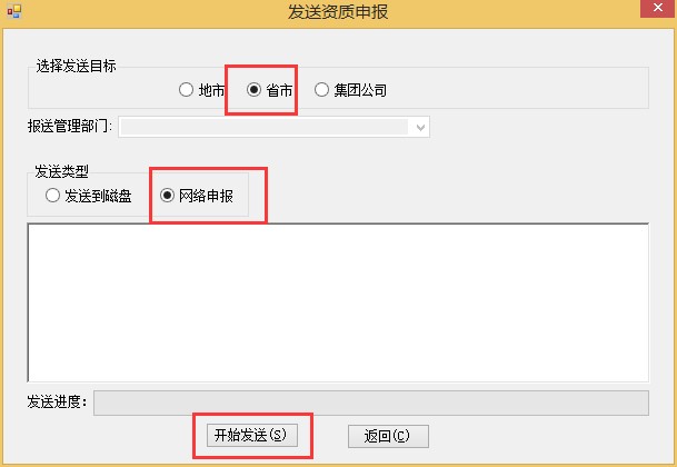 注:發(fā)送資質申請表時,選擇發(fā)送目標為 省市 。