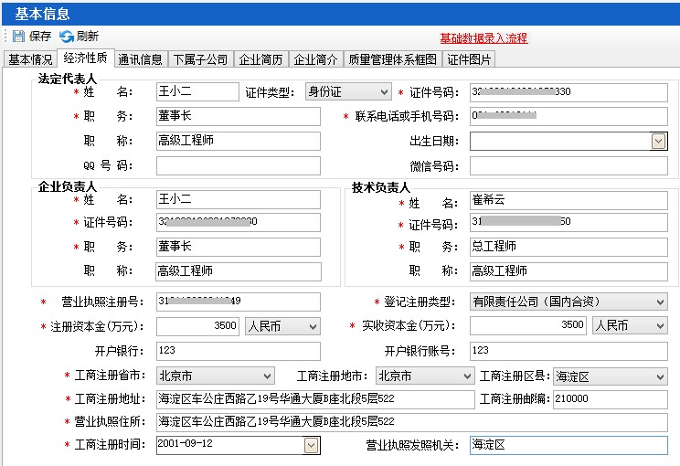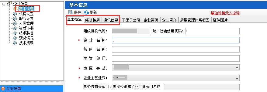 2.1、基本信息填寫,主要填寫基本情況、經(jīng)濟性質和通訊信息。