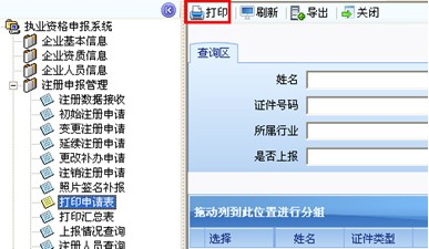 3、在線發(fā)送完成后,點(diǎn)擊“打印申請(qǐng)表”模塊,即可在此模塊中找到剛才上報(bào)的變更記錄,點(diǎn)擊“打印”,即可打印帶條碼的申請(qǐng)表,如圖10-8-2: