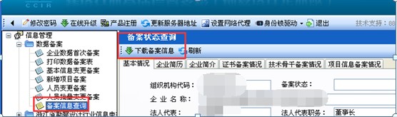 第四步:備案成功后第二天,點(diǎn)擊“信息備案管理-數(shù)據(jù)備案-備案信息查詢”模塊,彈出備案狀態(tài)查詢界面,點(diǎn)擊“下載備案信息”,下載成功之后,里面的企業(yè)顯示的就是變更后的。(如圖11-9-4)